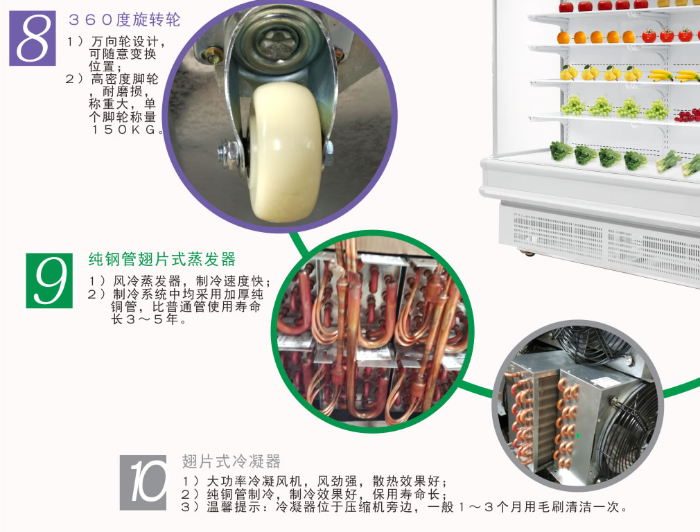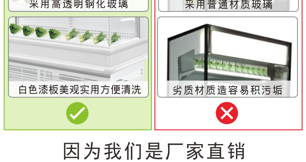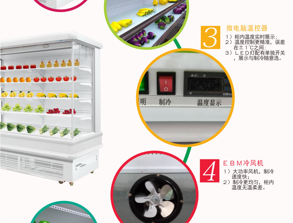 ① 風扇或空調出風口不能正對敞口式冷柜吹風;