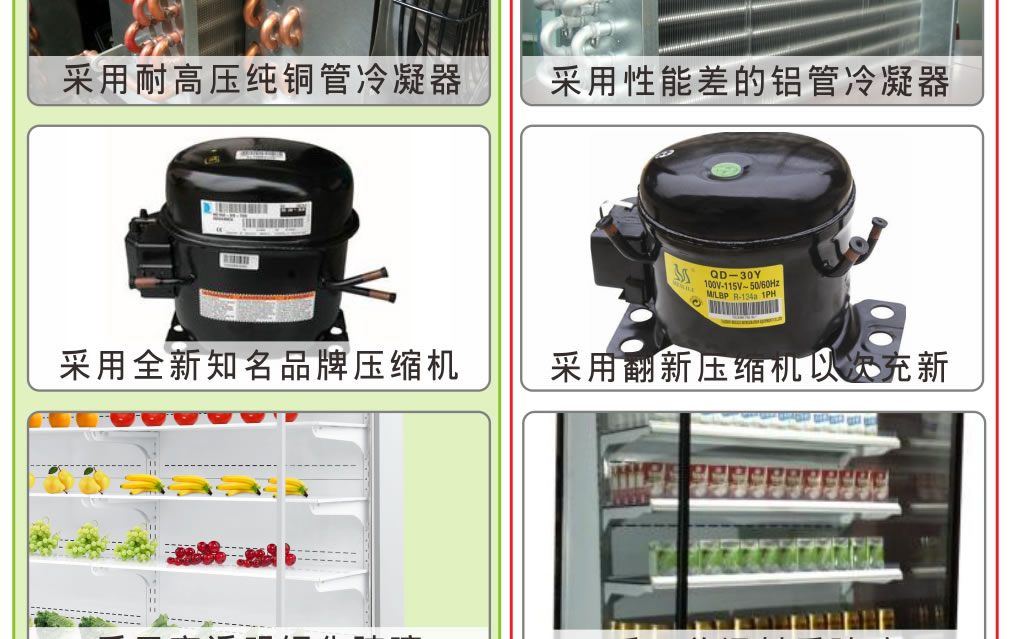 ④ 初次使用時,先空柜運行1小時左右,待柜內溫度降下來后再逐步放入商品,盡量少量多次添加,柜內不能添加過滿。