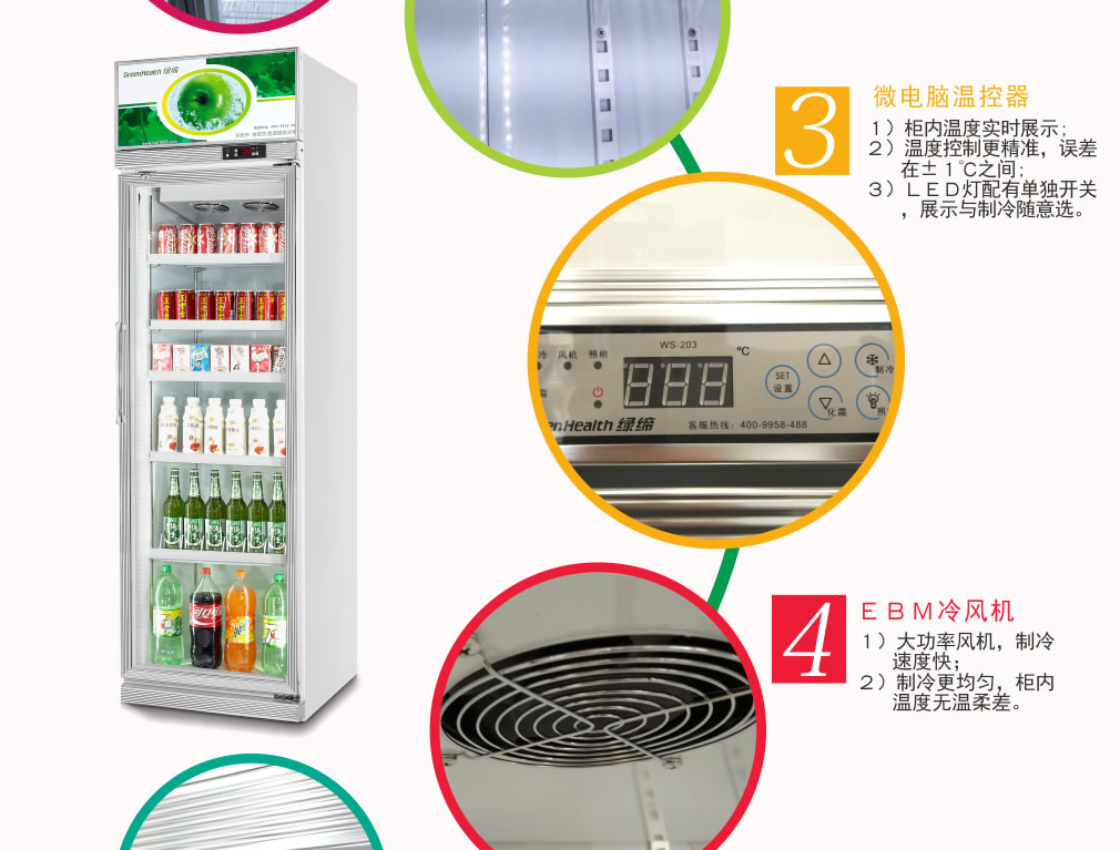 ④ 初次使用時,先空柜運行1小時左右,待柜內溫度降下來后再逐步放入商品,盡量少量多次添加,柜內不能添加過滿。