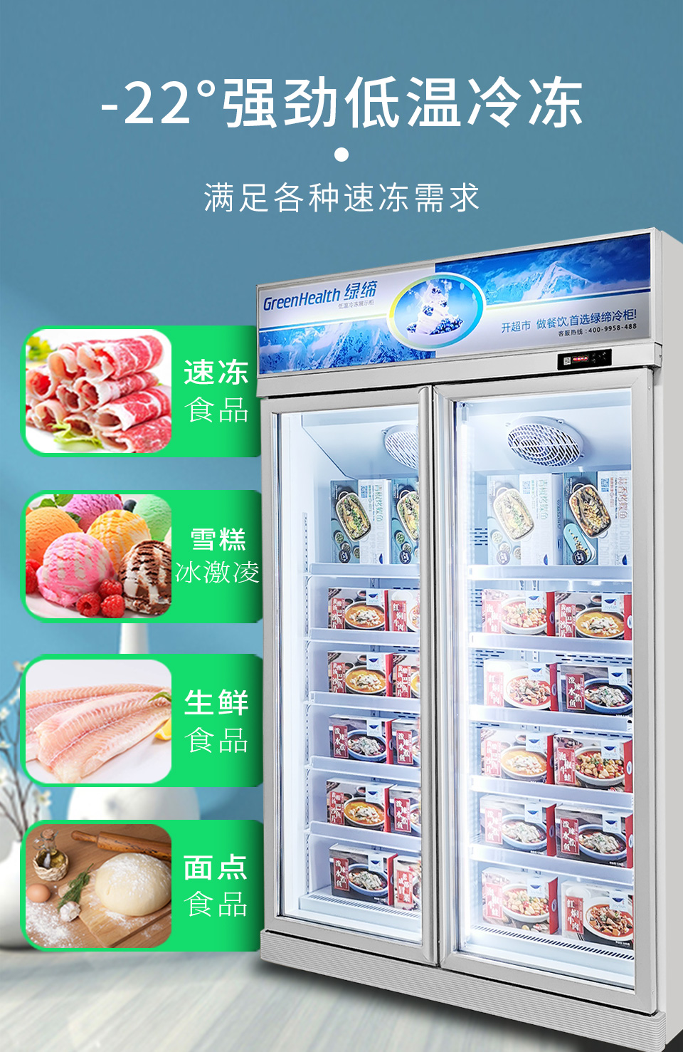 廣州綠締冷柜廠家提供優質:超市冷柜、冰柜、冷藏柜、風幕柜、便利店冷柜、冰柜展示柜、方塊制冰機、冷庫安裝等產品。 10余年商業制冷設備制造銷售經驗,廠家直銷,全國聯保,公司產品深受國內外廣大客戶青睞。全國服務熱線:400-9958-488