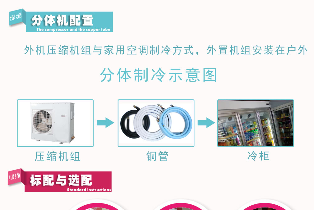 ③ 選擇平整地面放置冷柜,背部離墻保持15~20CM,方便于機(jī)組通風(fēng)散熱;