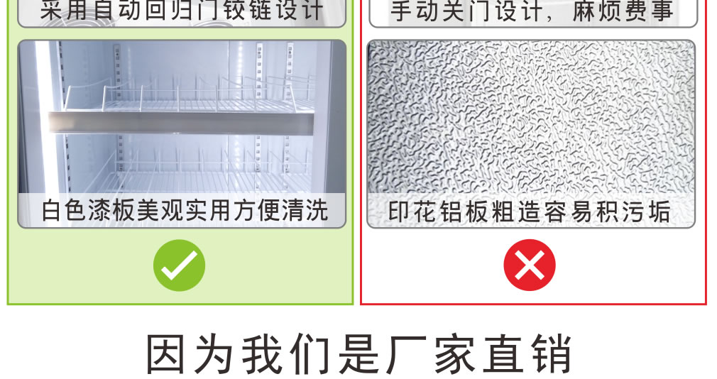 ② 冷柜禁止放在陽光直射的地方,否則因長期達(dá)不到停機(jī)溫度,影響冷柜壽命;
