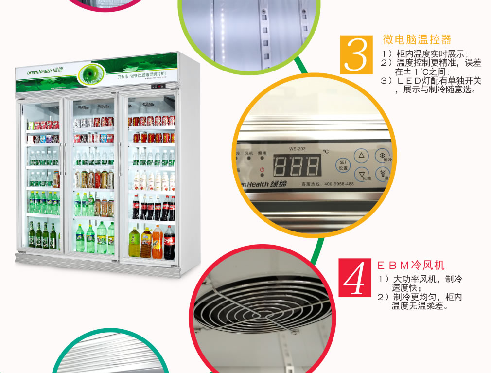 ④ 初次使用時,先空柜運行1小時左右,待柜內(nèi)溫度降下來后再逐步放入商品,盡量少量多次添加,柜內(nèi)不能添加過滿。
