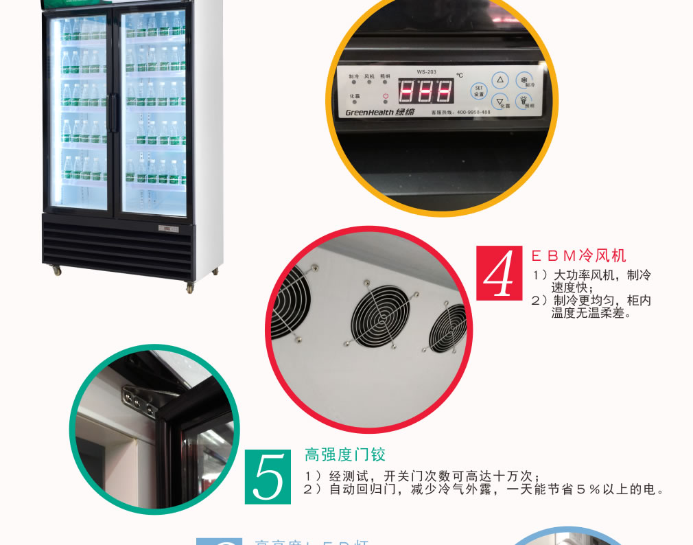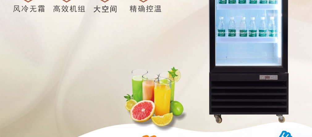 ③ 冷柜內外溫差較大時,遇空氣溫度較大的天氣時玻璃門上有水霧凝結,將溫度調整后即可。