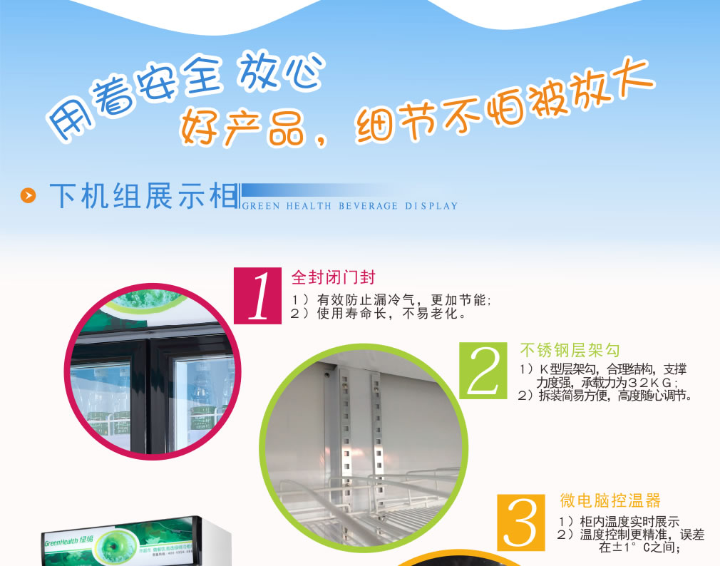 ④ 初次使用時,先空柜運行1小時左右,待柜內溫度降下來后再逐步放入商品,盡量少量多次添加,柜內不能添加過滿。