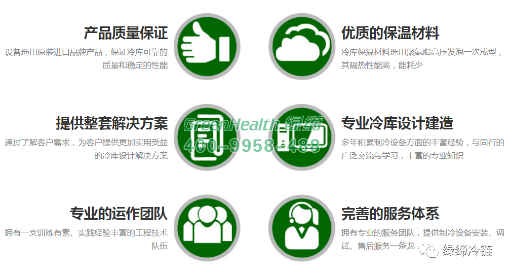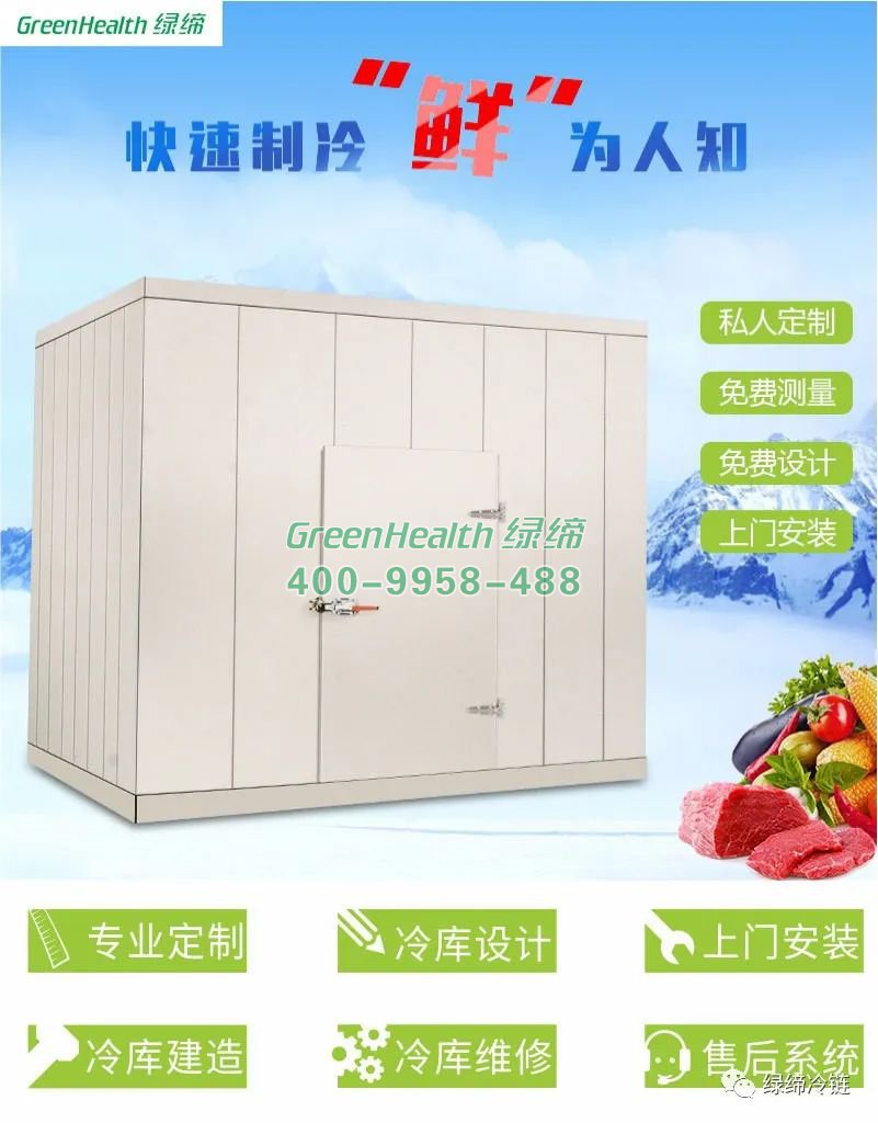 綠締冷庫采用聚氨酯阻燃發泡料夾心板,導熱系數低,強度高、隔熱效果好 。