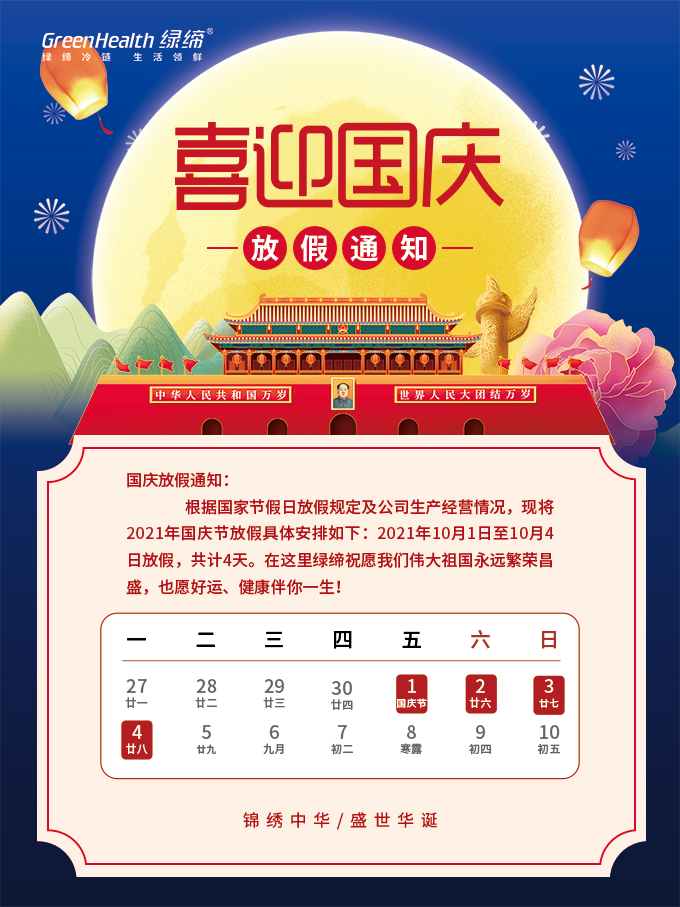 根據國家節假日放假規定及公司生產經營情況,現將2021年國慶節放假具體安排如下: