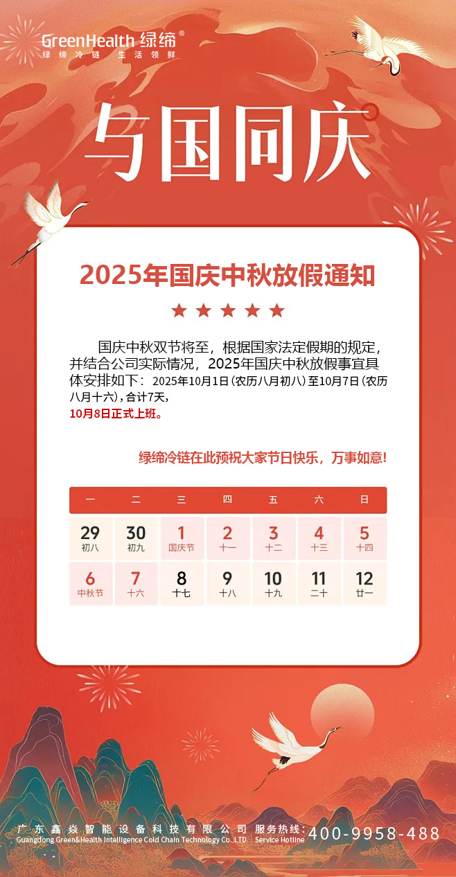 慶國慶,迎中秋-綠締冷鏈2025年國慶中秋節(jié)放假通知